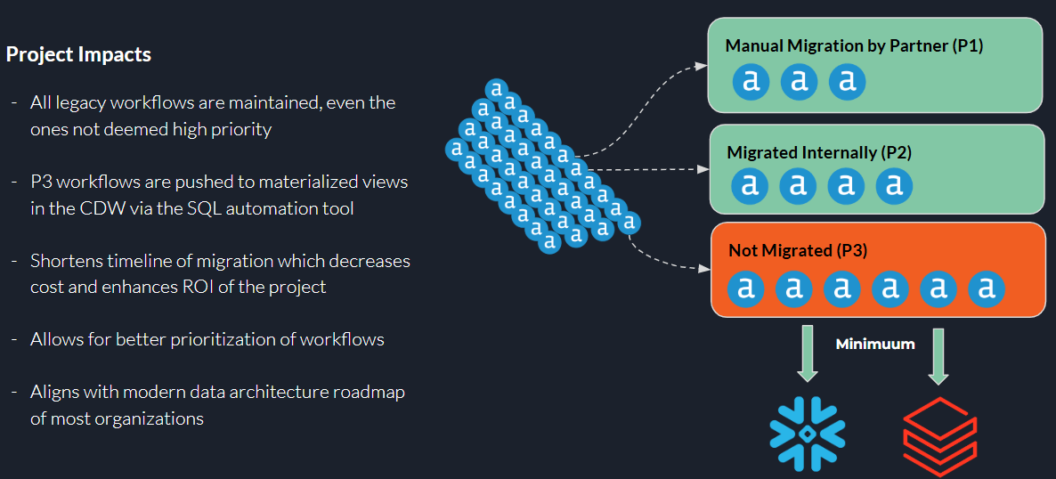 Instead of migrating legacy workflows to the new platform, Minimuum automates the Alteryx workflow to SQL. This has several advantages for the Client.